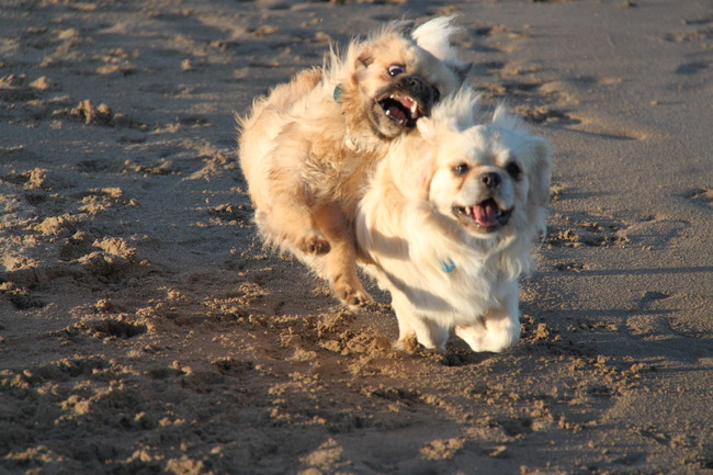 Honden foto's > The tibbies on tour > heerlijk uitleven op het strand