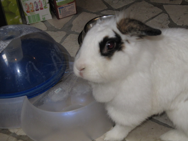 > Dit is Deugniet, dit konijntje gedroeg zich als een hondje. Ze liep me constant achterna, in de keuken liep ze te bedelen wanneer ik bij de ijskast stond en sprong op schoot voor een aai. Ze was volgens mij een hondje in konijnenkleding. Mijn meissie is helaas vorig jaar overleden.