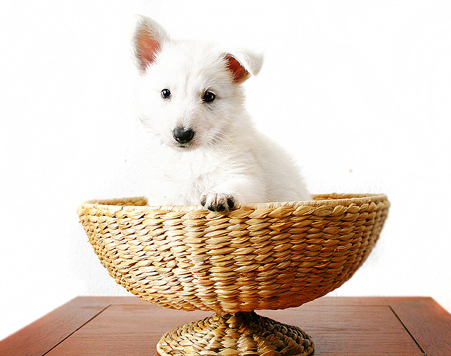 Honden foto's > Charlotte en de Witjes > Portretjes week 5. Teefje met het roze bandje.