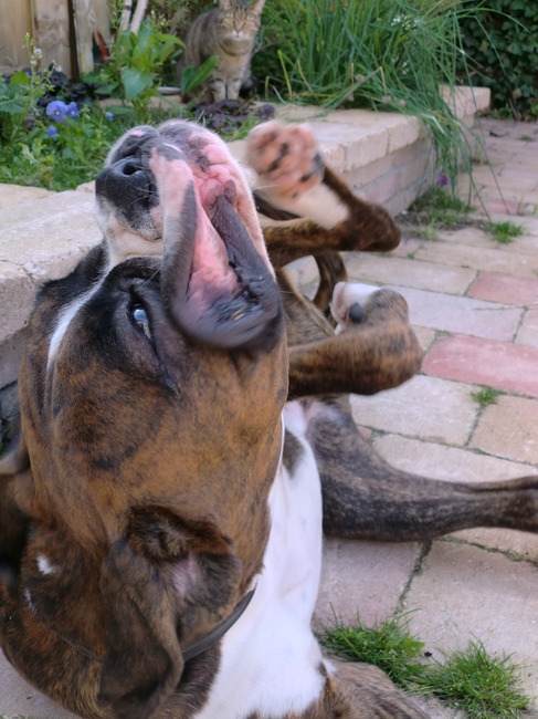 Honden foto's > Petra en de platsmoeltjes > ff lekker krabbelen... 8mnd