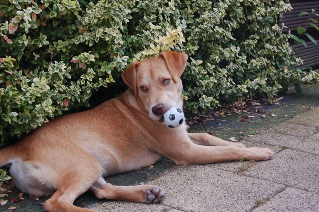 Honden foto's > Lisa > In de tuin, met een balletje
