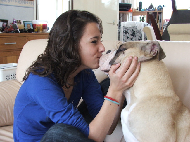 Honden foto's > gerda > brandon gaat nu kindje een kus geven