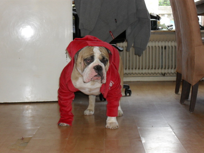Honden foto's > gerda > hahaha brandon met een jas aan