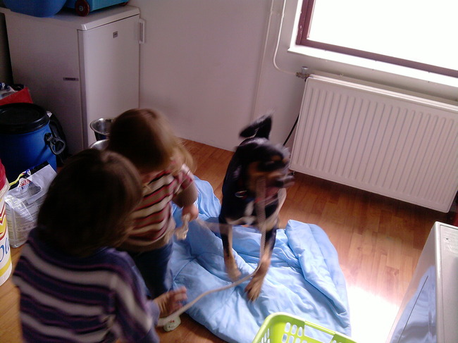 Honden foto's > Roxy , Bonky en Daisy > Wat heb ik toch altijd een lol met die 2 dames hihi