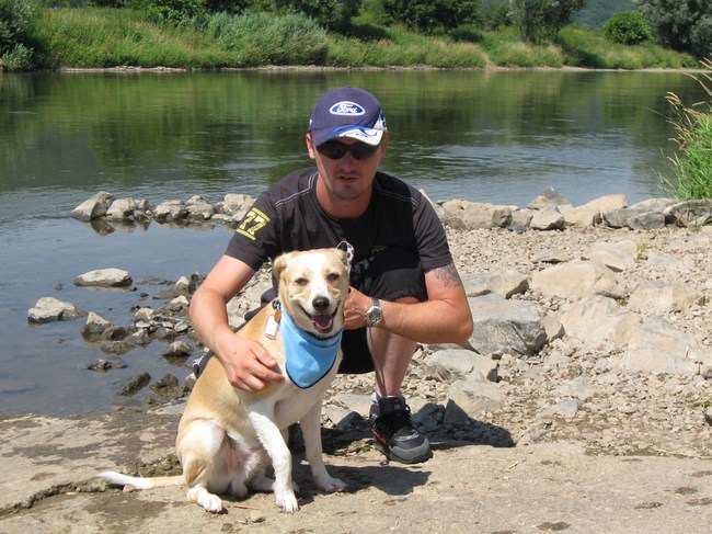 Honden foto's > ingrid > Senna en de baas :) Wij de weser op vakantie.