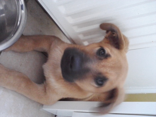 Honden foto's > Moo & Mila > Ik pas nu nog tussen de keuken en de muur maar niet lang meer