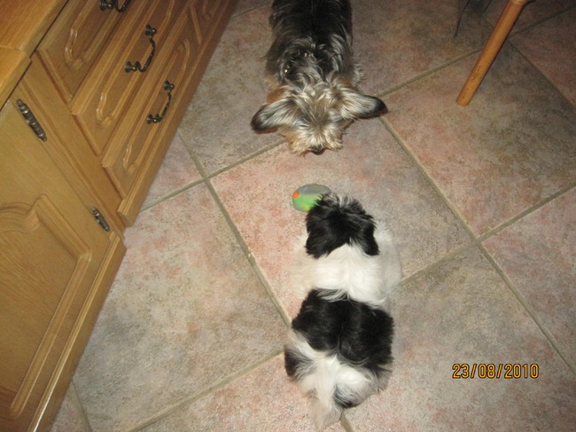 Honden foto's > Monique, Benji & Boyke > Zo lief samen!!!