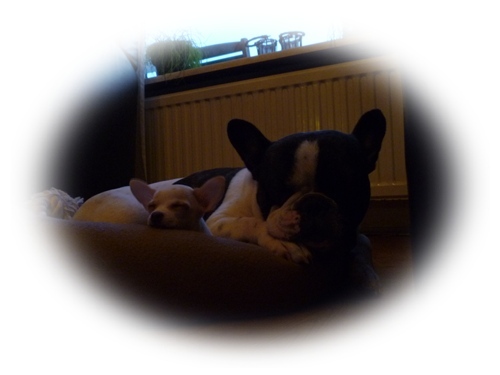 Honden foto's > mariska > Na bijna een weekje is Bibi helemaal geaccepteerd door Diesel ,Samen lekker slapen in het mandje .
