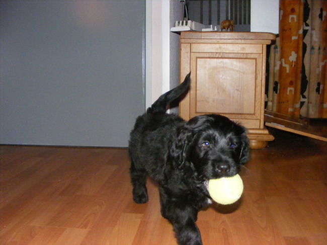 Honden foto's > lyanne > charly zijn 1e dag thuis met de bal