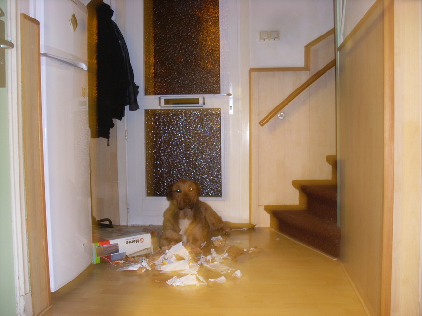 Honden foto's > Hondenhumor Sasja de Eerste ITC-Hond die nu met pensioen is. > Hond als sloper!!