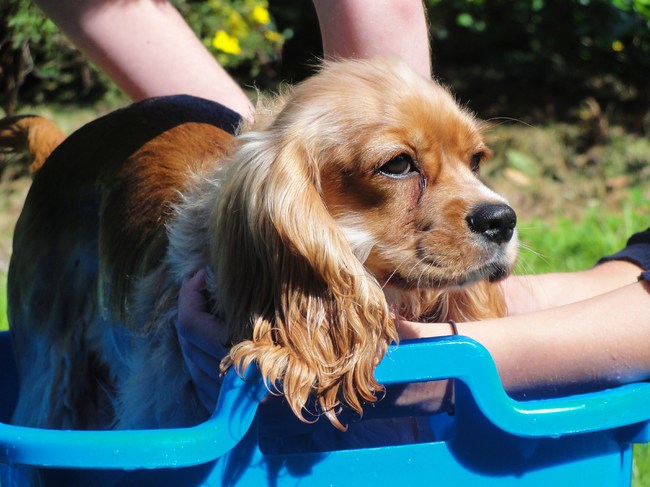 Honden foto's > Natalie & Mo > Ja, onder de modder hing 'ie. Was lekker weer dus snel maar even gewassen. Eerste keer in bad