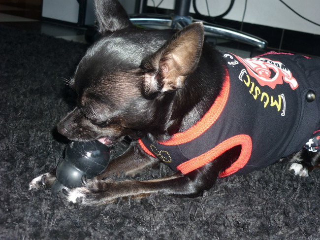 Honden foto's > Luna en Ayko > Mama vulde mijn kong weer met lekkere dingen!