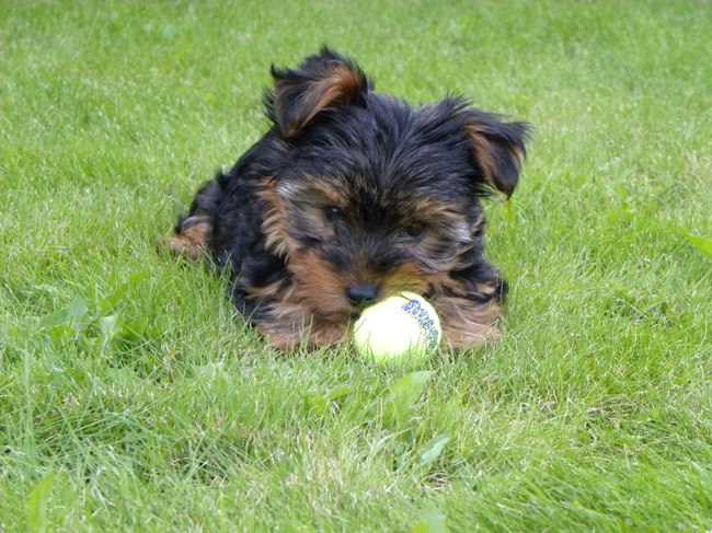 Honden foto's > Joyce, Kaily&Zoëy > Dit is mijn balletje, speciaal op puppy formaat:P