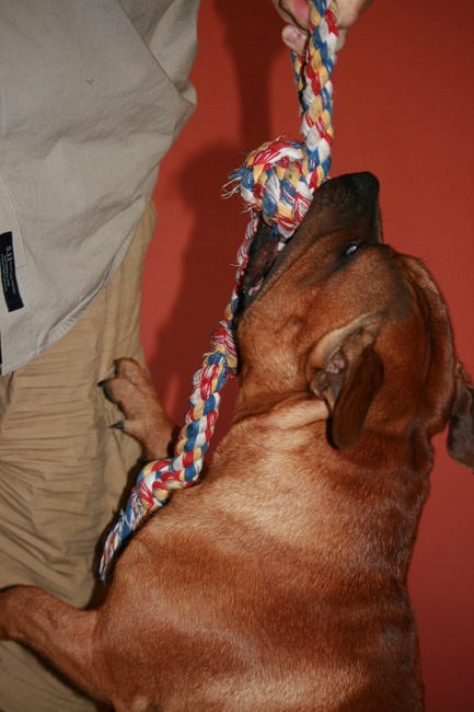 Honden foto's > diane en tank > spelen met flostouw is zo leuk