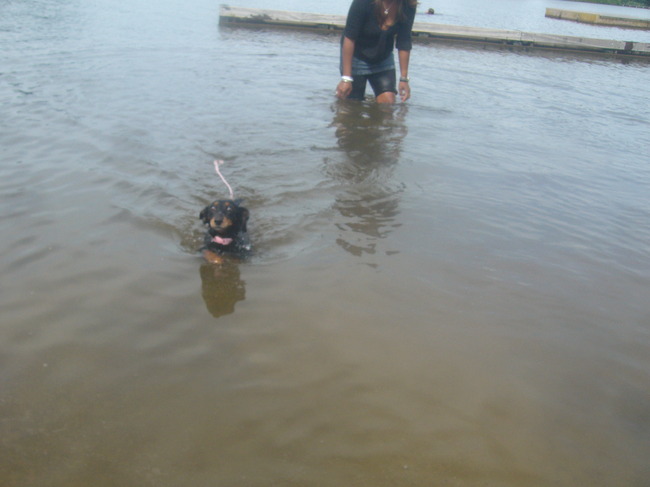 Honden foto's > Deedee > Mijn wekelijkse rondje zwemmen in het Snekermeer met het gezinnetje.