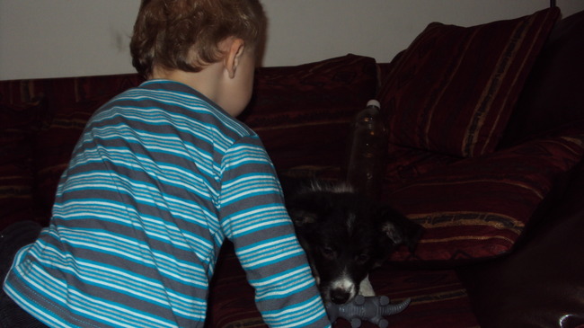 Honden foto's > shadow > Shadow en zoontje lief 1 malig op de bank;)