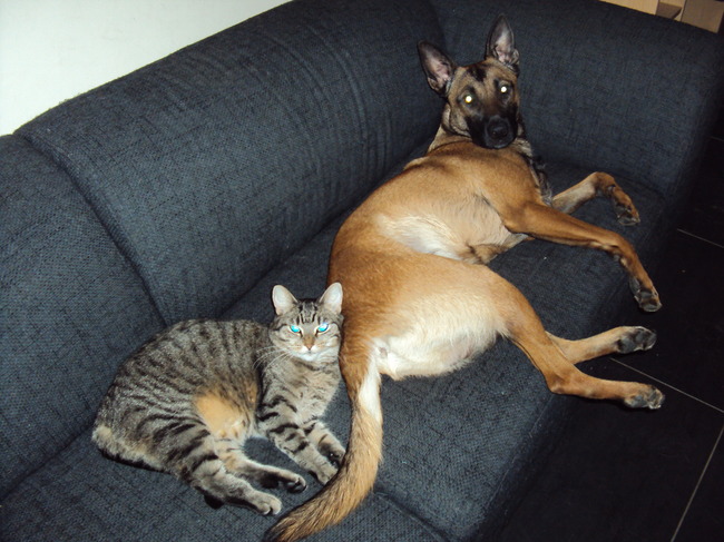 Onze Wicky en Tayco lekker op de bank van Marleen van Laarhoven