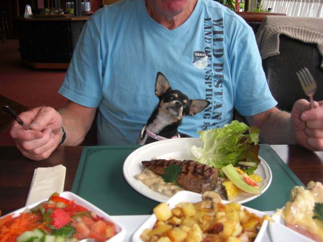 Honden foto's > Joke > Uit eten met de baasjes tijdens de vakantie