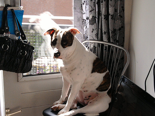 Honden foto's > Trotsuh Eigenaar Van Kyra > zitten op de stoel en uren naar buiten kijken dat vind ik ohhhh zo fijn!