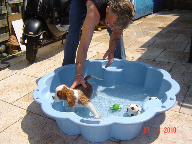Honden foto's > leony met Binky > Ik in me prive zwembad .