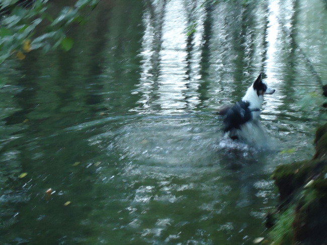 Honden foto's > Nicky en Maggie > Hup, het water in