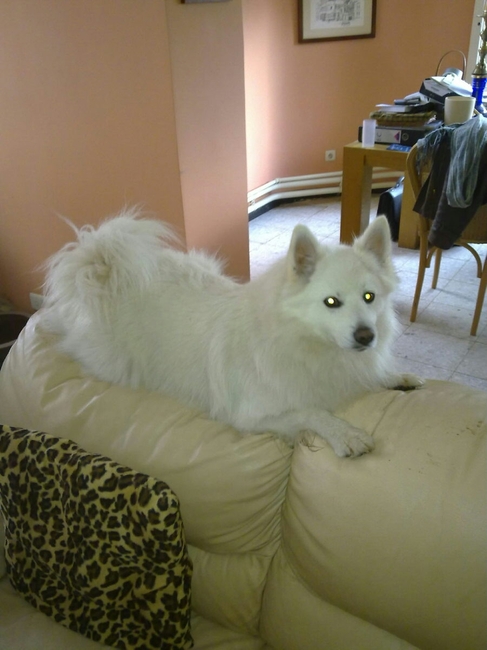 Honden foto's > Arlette > Max op zijn geliefkoosde zetelplaatsje : de rugleuning
