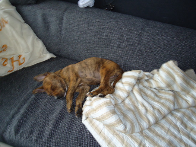 Honden foto's > nouschka & Devil > toen hadden we Devil net zo lekker op de bank aan het slapen