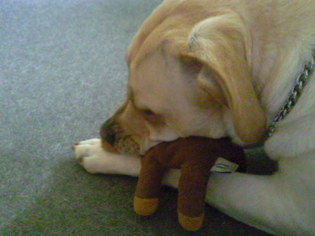 Honden foto's > Suus > tes en haar half afgekauwde aapje alleen het lijfje leeft nog