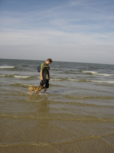 Honden foto's > Meduus > juli 2007, voor het eerst in/aan zee, eng al dat water