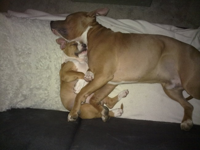 Honden foto's > Colinda > Lekker bij m'n grote broer slapen (Maart '10)