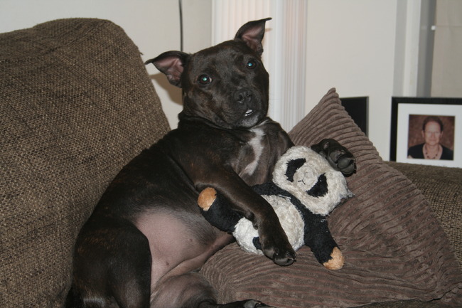 Honden foto's > Kim en Mika!! > Dit is mijn pandabeer en daar blijven jullie van af!!