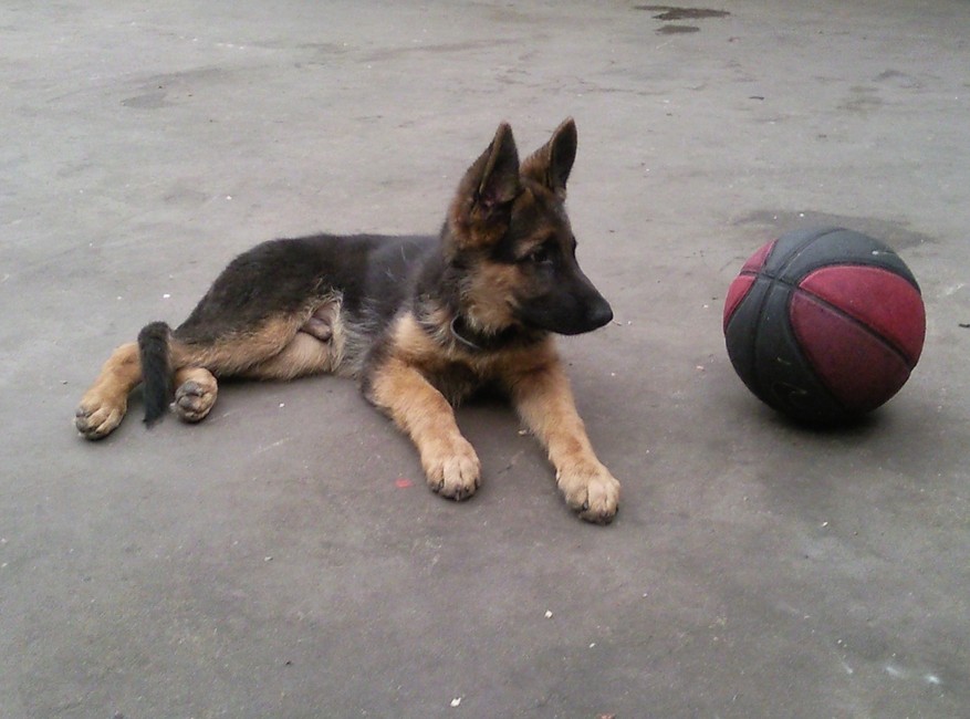 Honden foto's > Nina > bijna 4 maanden oud en lekker met een bal spelen .