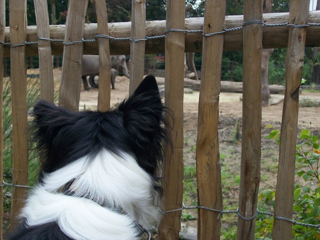Honden foto's > Bugs **Taz** > ik kan net door de spijltjes heen kijken