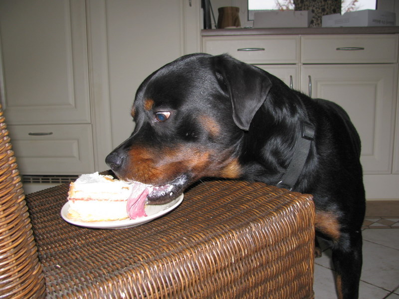 Arrigo lekker aan het knagen Yeager. Heerlijk zo een botje! Het is mijn bot!