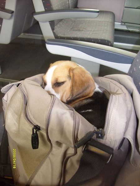 Kei lief, heb zelf nog niet op de bus gereden met men Beagles. Op de trein slapen ze ook altijd