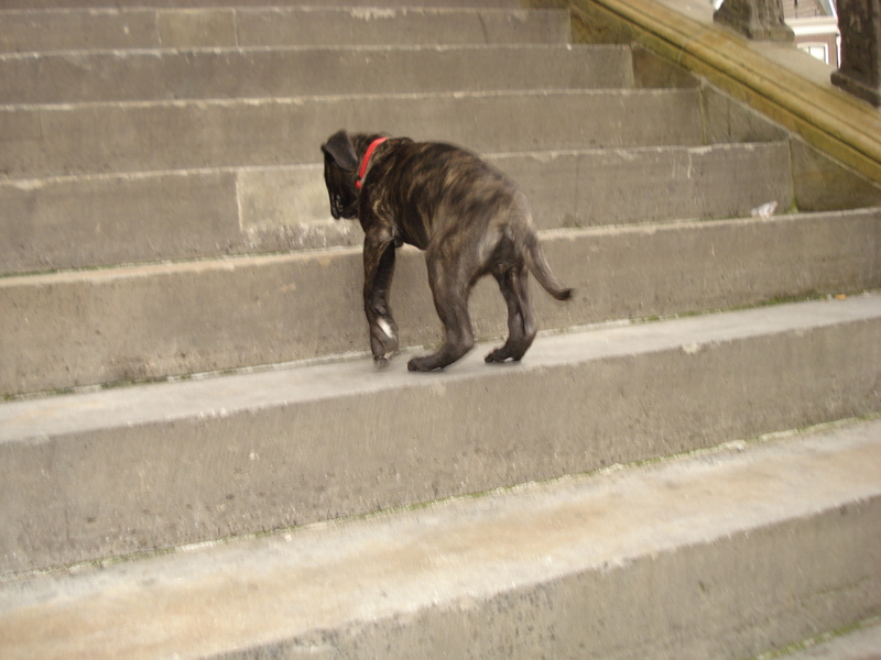 Geen titel - Op de trappen van het Stadhuis in Gouda, nu is ze in 2 sprongen beneden!