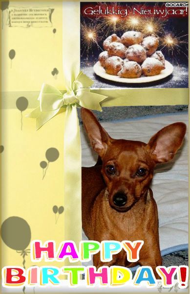 Nogmaal gefeliciteerd Yuna,van je Kennelbaasje en de dwergjes XXX en Knuffels en een mooie dag morgen en laat je lekker goed verwennen maar dat komt wel goed