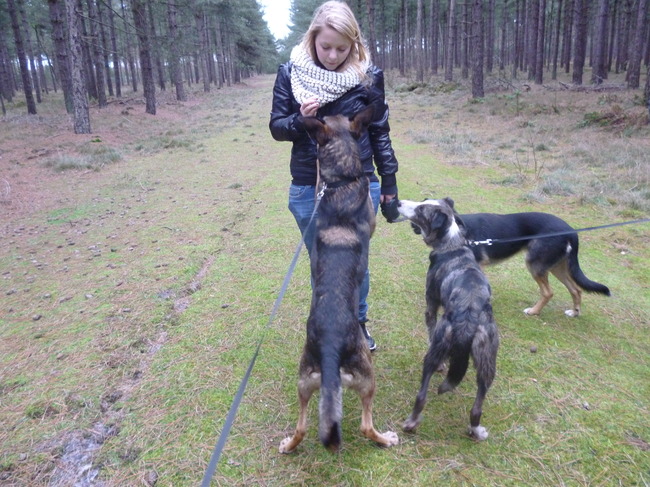 Wel oppassen met reuen want met de wandeling was Fidel en twee teefjes (Vino van Eline en Minka van het asiel) en hij was wat jaloers op Fidel omdat hij aan Minka hong, terwijl Minka "rino's teefje" is (ze delen een hok). Hij heeft tweemaal gesnauwd, dus ik zou hem niet samen zetten met een opdringerige reu