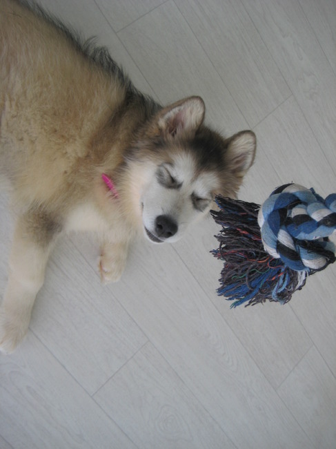 Deze foto's zijn heb ik een paar weekjes terug genomen toen Dempsey een nieuw speeltje kreeg en Taiko zijn eerste speeltje kreeg