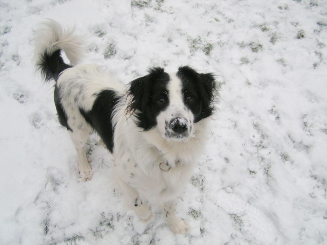 3 is van boven genomen, en de hond heeft al veel wit dus zou geen sneeuw erbij doen...