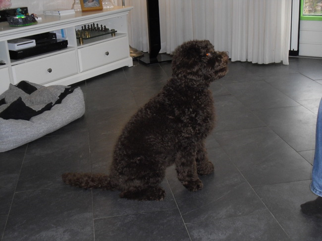 Dit was vlak nadat mijn zoontje zelf het eerste speeltje gegooid had, zoonlief verloor z'n aandacht al, maar Puff nog niet..