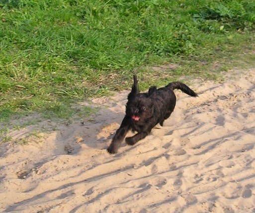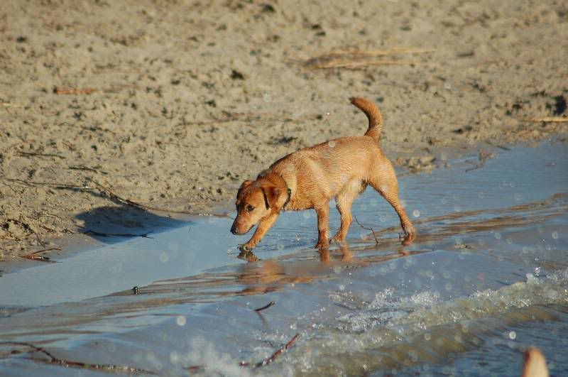 Erkemederstrand. Het ratje gaat ook overal mee naartoe.