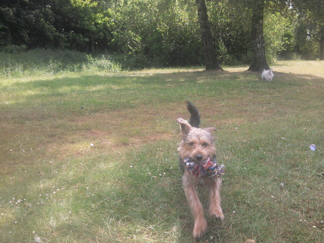 Hebben jullie ook zulke mooie/leuke actiefoto's van je honden? Wij spelen hier geregeld met de bal, en daar worden leuke sprongen bij gemaakt..