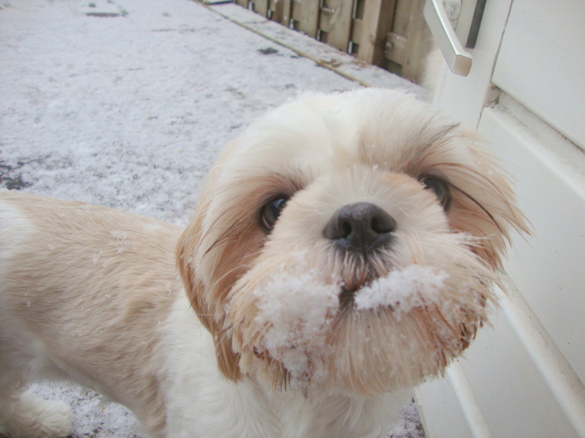 Hij stond te blaffen voor de deur toen hij die dikke vlokken zag! Haha! Net Lassie...