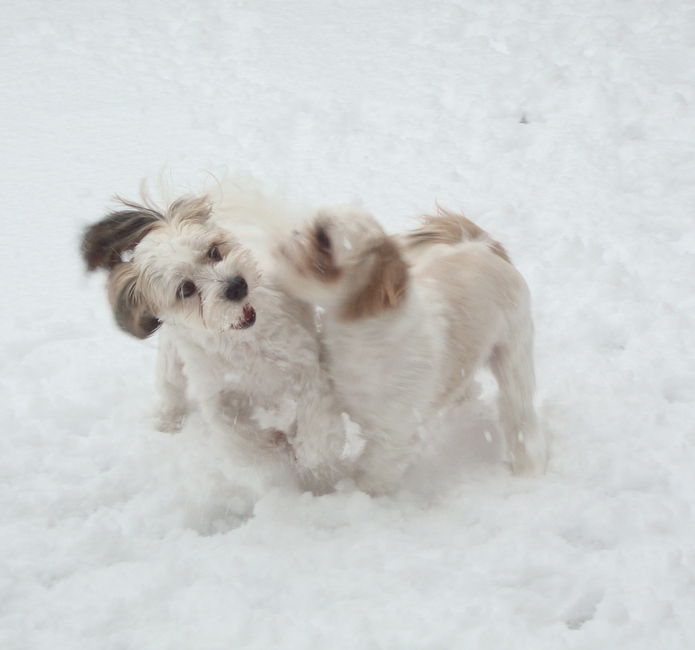 Het wordt toch al weer een stuk leuker als je die boefjes zo lekker zie ravotten in de sneeuw?