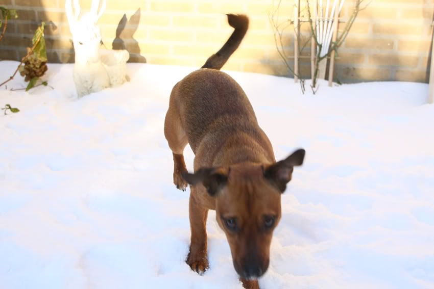 Hij kreeg wel koude pootjes hoor,dus maar 1 pootje omhoog,scheelt weer