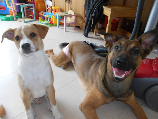 Wat een vervelende situatie joh! Maar zie ik op de foto dat Joy een onderbroekje aanheeft? En is ze toevallig loops? Dit kan toch ook invloed hebben op de gesteldheid van de hond? Misschien is ze hierdoor wel extra geprikkeld?
