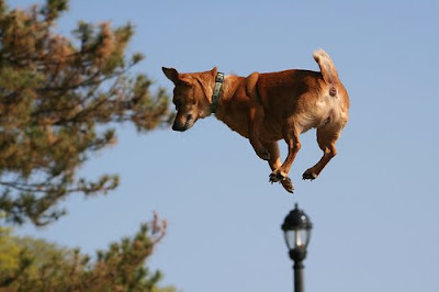 Dat ze bv. lopen en er op het juiste moment een foto was getrokken dat ze precies vliegen