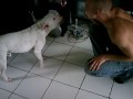 Haha ik klik het filmpje aan, maar mijn geluid stond voluit, dus hoorde keihard blaffen, m'n vriend lag gelijk stijf op de bank en Sensi gaat ook helemaal uit d'r dak haha...