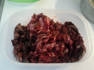 Ik heb van richard het hertenvlees, mooi vlees en vrij grote stukken. Ik snij het dan zelf want Jessy eet geen kilo per dag